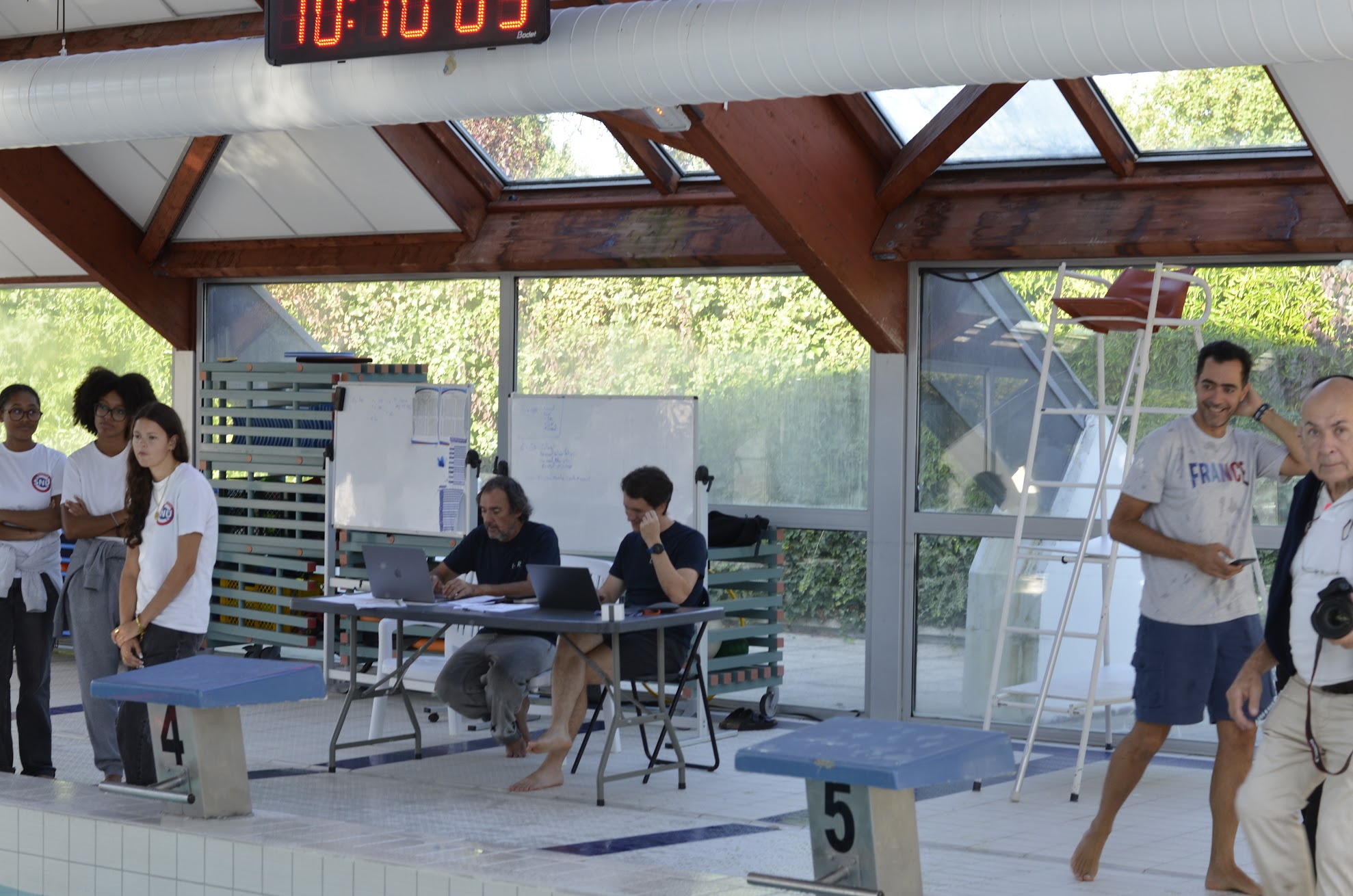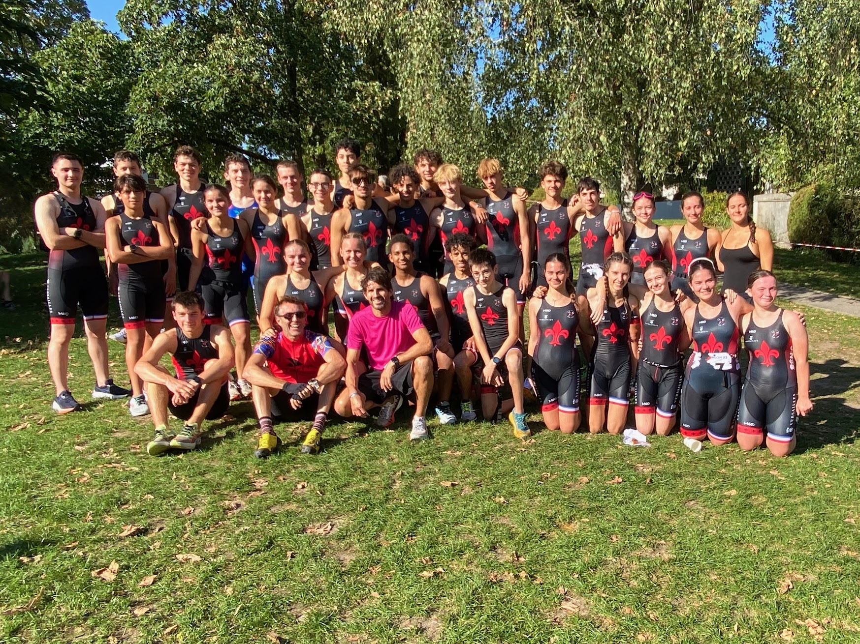 - Suivis des Seniors et Masters, partis pour 500 m de natation et 2,5 km de course à pied, avec pour certaines et certains un rythme bien compétitif, et pour d’autres une belle découverte de la discipline, tout aussi exigeante physiquement.