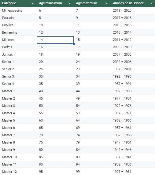 • Jeunes entre 12 et 17 ans au 31/12/2026 (catégories benjamin, minime, cadet, soit des années de naissance 2009-2014).